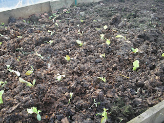 Opened up the cloche made from old plastic greenhouses and polytunnel plastic,(put up on the 10th Feb) and planted in lettuce seedlings. No sign of the carrots yet. Have to say was pleased to see some ex slugs though after my sprinkling of slug pellets, which I really am loathed to use, but figured under cover they will be away from the wildlife.
